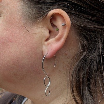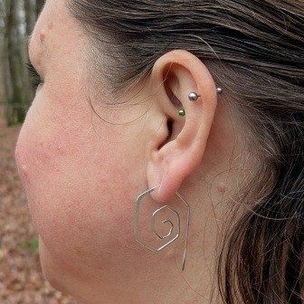 Ces boucles d’oreilles sont fabriquées à partir d’argent massif, également appelé argent 925 ou argent sterling. Elles sont forgées à la main dans mon atelier normand de même que tous les modèles créés par mes soins. Chaque modèle est façonné à partir d’un simple fil d’argent — un argent de haute qualité, solide et éclairant, qui vieillit bien et se patine avec caractère. Ce fil unique, d’un millimètre à peine, devient entre les mains de l’artisan une forme pleine de sens. Rien n’est superflu. Tout est intentionnel.